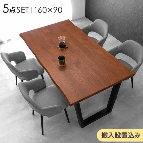 【搬入設置込み(テーブルのみ)】ダイニングテーブルセット 4人掛け 5点セット 160cm テーブル 長方形 ダイニングセット ダイニングテーブル ダイニングチェア 【超大型】 99901145〔【テーブル】ブラウン/【チェア】アッシュグレー〕