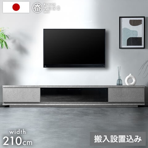 【搬入設置込み】テレビ台 国産 高品質 幅210 日本製 完成品 鏡面 木製 テレビボード テレビラック ロータイプ 32型 40型 42型 60型 大型 北欧 収納 【超大型】 99901152〔セラミックグレー〕