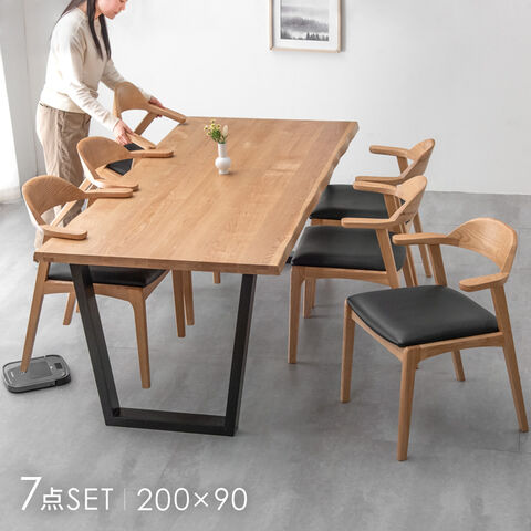 お掃除ロボット対応 ダイニングテーブルセット 6人掛け 天然木 7点セット 200cm テーブル 玄関渡し 99901157〔ブラウン(PVC座面:ブラック)〕【予約】1月中旬※1/20までに出荷予定