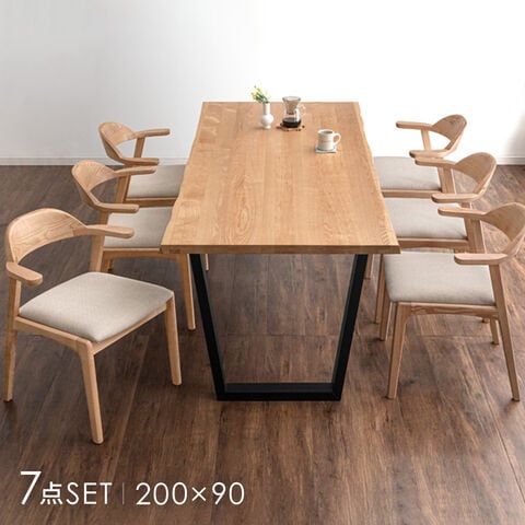 お掃除ロボット対応 ダイニングテーブルセット 6人掛け 天然木 7点セット 200cm テーブル 玄関渡し 99901157〔ナチュラル(布座面:ベージュ)〕【予約】1月中旬※1/20までに出荷予定