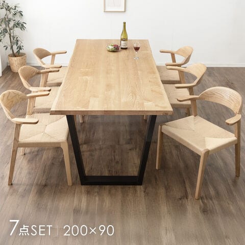 お掃除ロボット対応 ダイニングテーブルセット 6人掛け 天然木 7点セット 200cm テーブル 玄関渡し 99901157〔ナチュラル(座面:ペーパーコード)〕【予約】1月中旬※1/20までに出荷予定