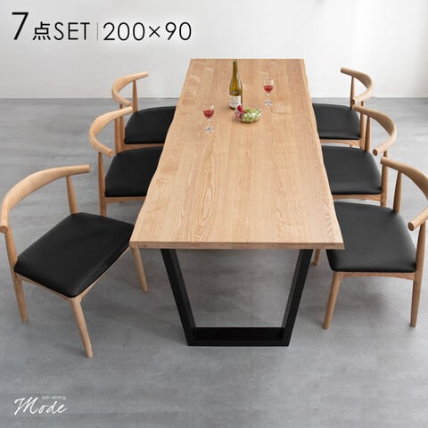 天然木アッシュのぬくもり感じる ナチュラルモダンダイニング7点セット テーブル ・美しい木目が特長のアッシュ天然木を使用 ・なぐり加工を施した高級感ある耳付き天板 ・ゆったり使えるワイド天板 ・モダンなブラック脚 チェア ・シルエットの美しい北欧デザイン ・継ぎ目のない美しい曲木の背もたれ ・高い快適性 / 耐久性を実現した完成品 ・張地は選べる3タイプ -サッと拭くだけお手入れ簡単PVCレザー -年中さらっと快適ファブリック生地 -使うほど身体に馴染むペーパーコード |