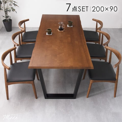 天然木 ダイニングテーブルセット 6人掛け 7点セット 200cm テーブル 長方形 ダイニングセット 玄関渡し 【超大型】 99901158〔ブラウン(PVC座面:ブラック)〕【予約】1月下旬※1/31までに出荷予定