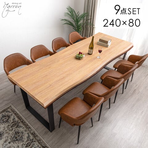 幅240cm ダイニングテーブルセット 8人掛 9点 長方形 ダイニングセット テーブル チェア 玄関渡し 【超大型】99901177〔テーブル:ナチュラル/チェア:レトロキャメル(レザー)〕【予約】1月上旬※1/11までに出荷予定