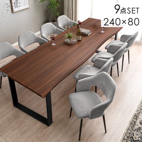 幅240cm ダイニングテーブルセット 8人掛 9点 長方形 ダイニングセット テーブル チェア 玄関渡し 【超大型】99901177〔テーブル:ブラウン/チェア:レドグレー(ファブリック)〕【予約】12月下旬/入荷後2~4週間でお届け