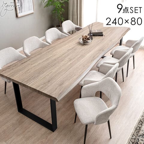 幅240cm ダイニングテーブルセット 8人掛 9点 長方形 ダイニングセット テーブル チェア 玄関渡し 【超大型】99901177〔テーブル:グレー/チェア:アイボリー(ファブリック)〕【予約】12月下旬/入荷後2~4週間でお届け