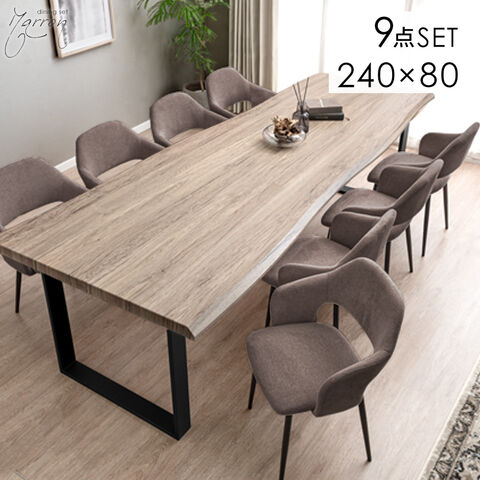 幅240cm ダイニングテーブルセット 8人掛 9点 長方形 ダイニングセット テーブル チェア 玄関渡し 【超大型】99901177〔テーブル:グレー/チェア:ショコラブラウン(ファブリック)〕【予約】12月下旬/入荷後2~4週間でお届け