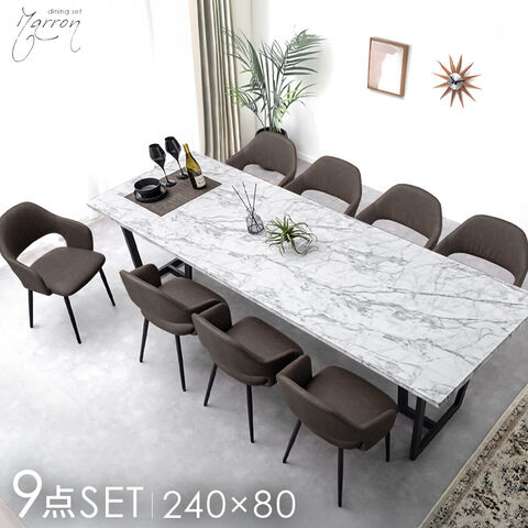 幅240cm 石目調 ダイニングセット 8人掛け 9点 長方形 テーブル チェア 大人数 玄関渡し 【超大型】99901183〔テーブル:ブラウニーブラック/チェア:レトロキャメル(レザー)〕