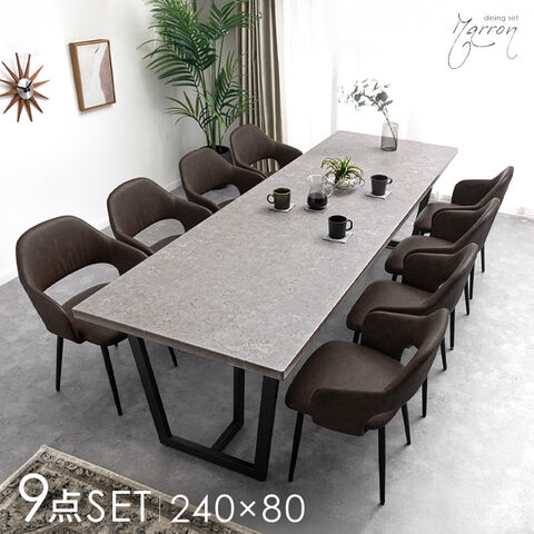 幅240cm 石目調 ダイニングセット 8人掛け 9点 長方形 テーブル チェア 大人数 玄関渡し 【超大型】99901183〔テーブル:ストーングレー/チェア:ブラウニーブラック(レザー)〕【予約】1月下旬※1/31までに出荷予定