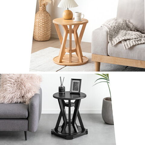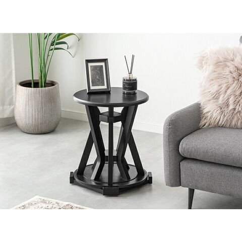 【即納】 天然木 サイドテーブル スツール 2脚セット 完成品 スタッキング ソファ ダイニングチェア キャスター付き 木製 コンパクト 北欧 モダン おしゃれ かわいい 49600402〔ブラック〕