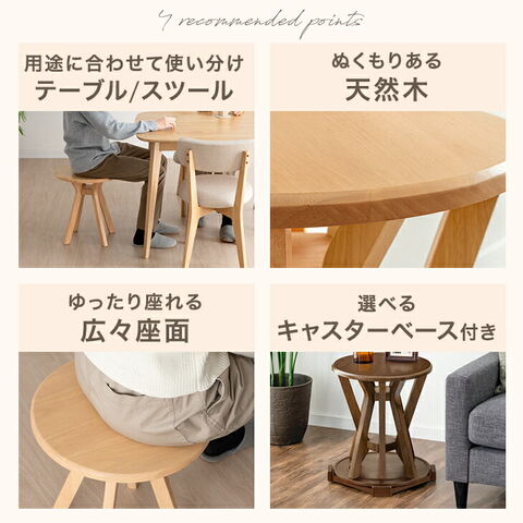 ・急な来客にも対応できるスツール2脚セット ・使用しないときはおしゃれなサイドテーブルに! ・選べるキャスターベース付き ・ぬくもり感じる天然木 |
