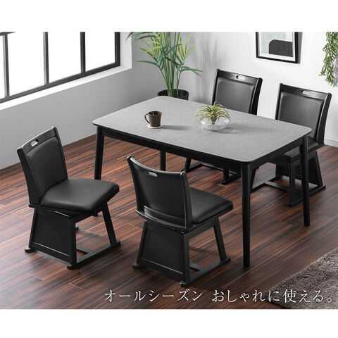 石目調 アイカ 高耐久メラミン天板 ダイニングこたつ 6点セット 4人掛け 135×80 ハイタイプ こたつセット ダイニングこたつテーブル ダイニング こたつセット 回転 チェア 長方形 玄関渡し 【超大型】 99907321〔グレー〕