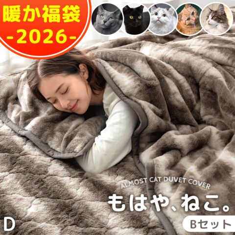【即納】 ★2026暖か福袋★ もはや、ねこ。Bセット 2枚合わせ 毛布 ダブル ボックスシーツ 枕カバー 洗える 二枚合わせ ブランケット 暖かい 掛布団 敷きパッド 冬 猫柄 福袋 99993107〔ノルベージュ〕