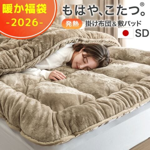 【即納】 ★2026暖か福袋★ もはや、こたつ。(R) [ 掛け布団 + 敷パッド ] セミダブル とろりん 掛け布団 敷パッド 吸湿発熱 日本製 抗菌 防臭 洗える 暖かい もはやこたつ 福袋 99993116〔ライトベージュ〕