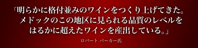 ヒュー・ジョンソン氏は 「メドック北部最大の最もよく知られたクリュ・ブルジョワ。ここと隣接する2つのシャトー(ラサルとガレ・ベルヴェ)をもつのは、超2級のレオヴィル・ラスカースを所有するドゥロン一族。優秀なところをのぞかせている」として二ツ星。