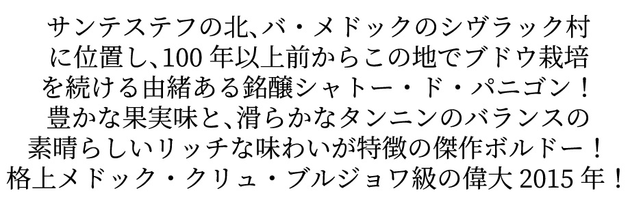 シャトー ド パニゴン 2015 AOCメドック クリュ ブルジョワ級 シャトー元詰 カリーヌ ルベイエ ダッダ家元詰 メドック シヴラック村