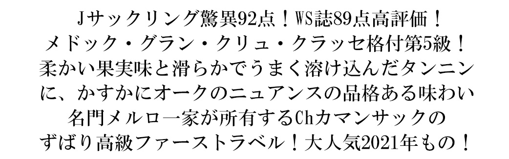 シャトー カマンサック 2021 メドック グラン クリュ クラッセ 格付第五級 AOCオー メドック ジェームス サックリング驚異の92点