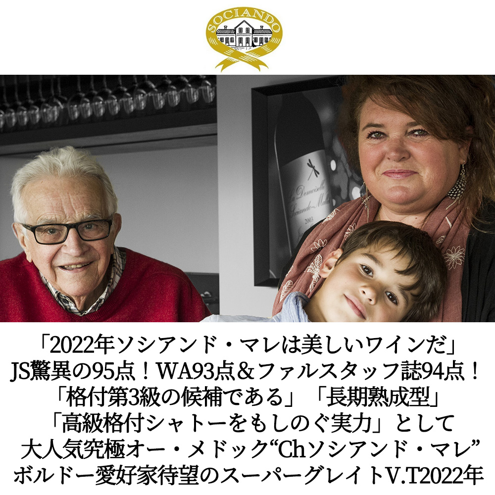 シャトー ソシアンド マレ 2022 AOCオー メドック (ジャン ゴートロー) シャトー元詰 JS驚異の95点&WA93点&fal誌94点高評価 Chateau Sociando Mallet 2022 AOC Haut Medoc