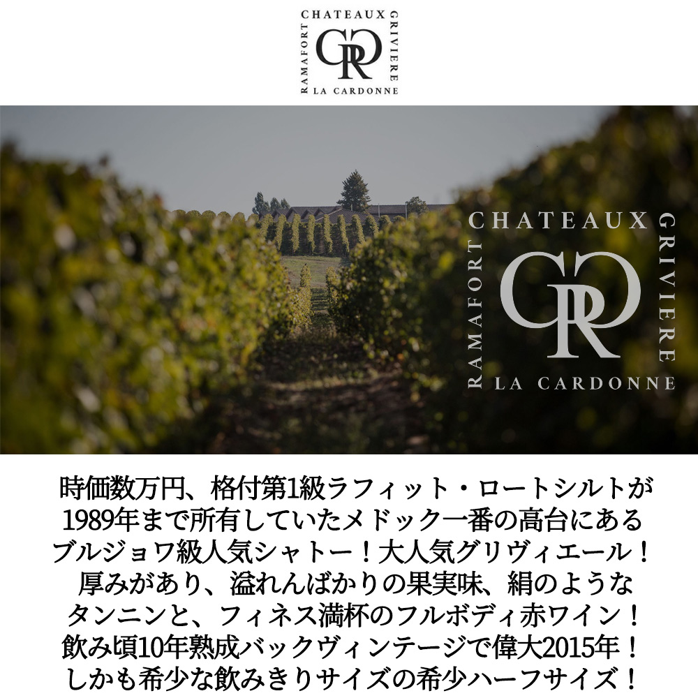 【商品名】【ハーフサイズ】シャトー・グリヴィエール[2015]年・AOCメドック・クリュ・ブルジョワ・CGR社セラー蔵出し・シャトー元詰・限定品・希少なハーフサイズ(375ml)【英名】Chateau GRIVIERE 2015 AOC Medoc Cru Bourgeois Half Size 375ml