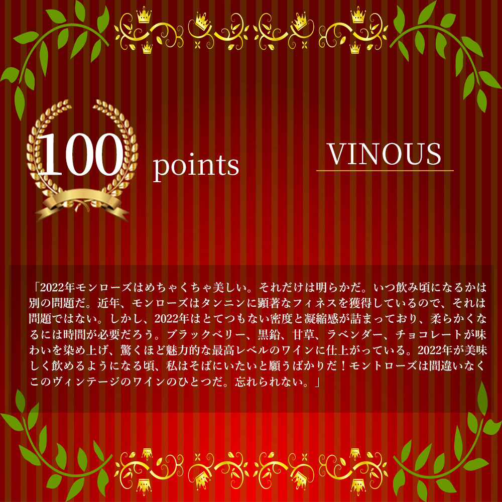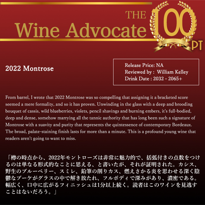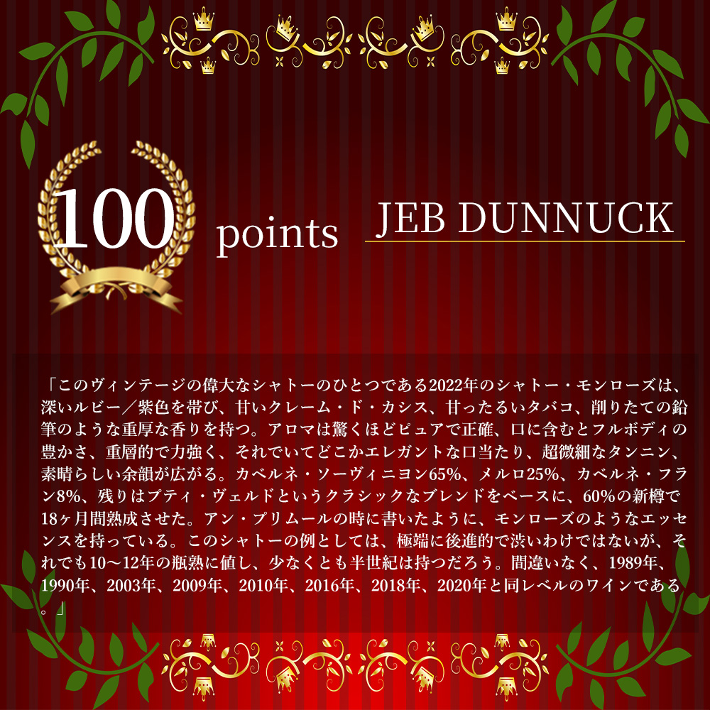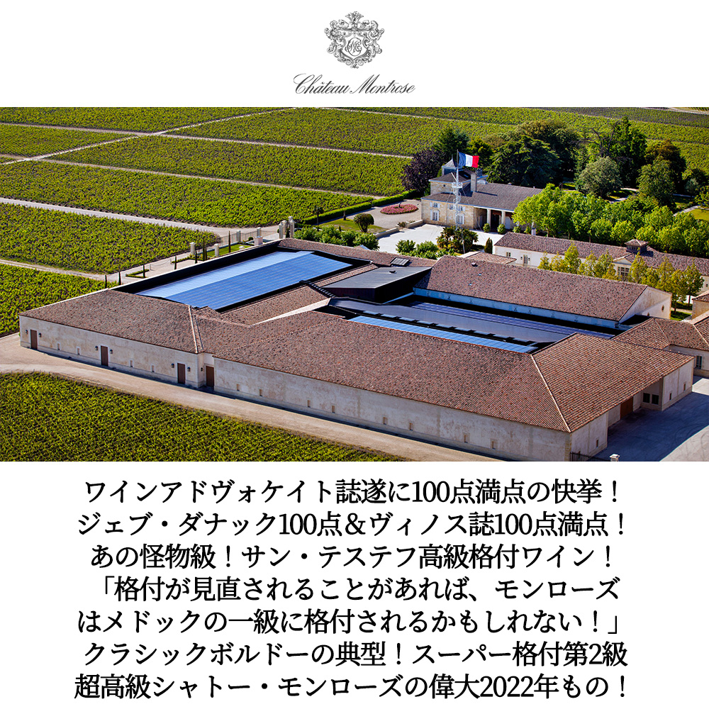 シャトー モンローズ 2022 メドック グラン クリュ クラッセ 格付 ワインアドヴォケイト誌100点満点&ジェブ ダナック100点満点&ジェームス サックリング97-98点&デカンタ97点 Chateau Montrose 2022
