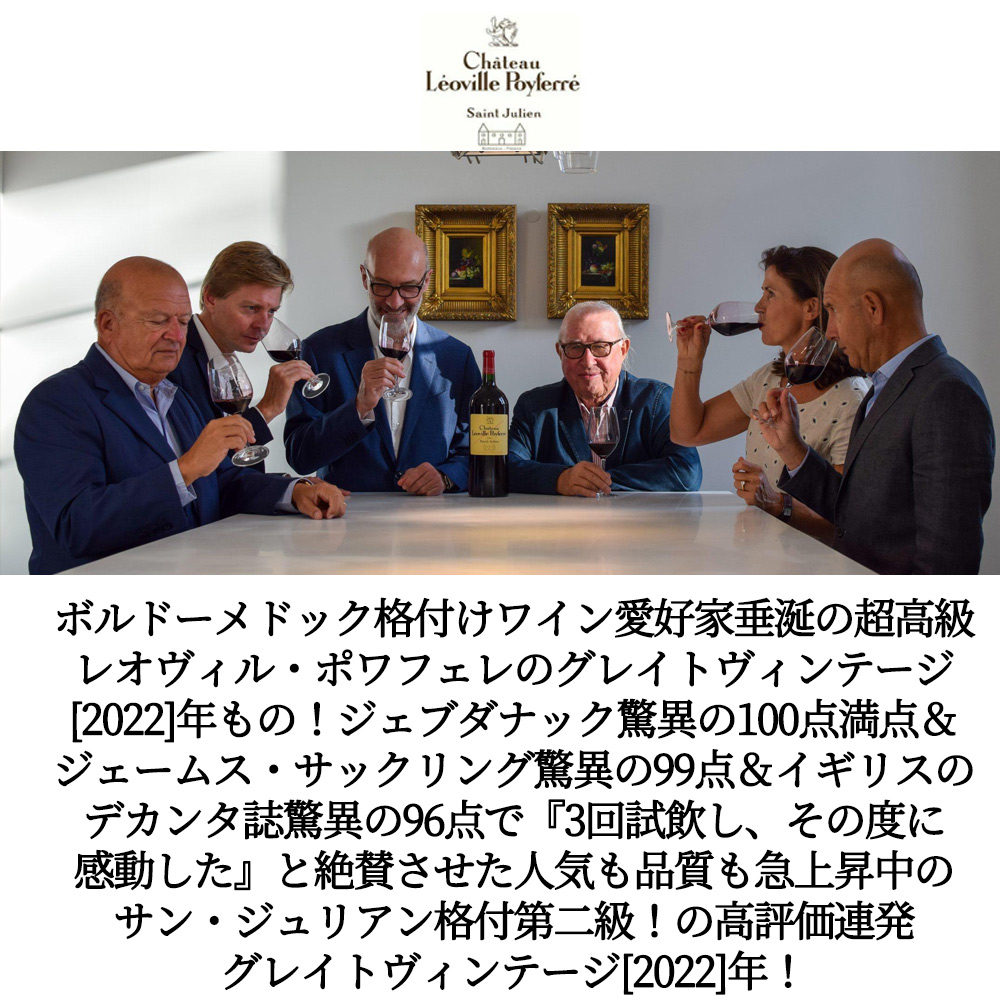 【商品名】シャトー・レオヴィル・ポワフェレ[2022]年・メドック・グラン・クリュ・クラッセ・ 格付第二級・AOCサン・ジュリアン・ジェブダナック驚異の100点満点&ジェームス・サックリング驚異の99点&ファルスタッフ誌驚異97点&ワインアドヴォケイト誌驚異94-96点・イギリスのデカンタ誌驚異の96点・ヴィノス誌驚異の96点・1920年からキュバリエ家所有【英名】Chateau Leoville Poyferre 2022 AOC Saint-Julien Grand Cru Classe du Medoc en 1855