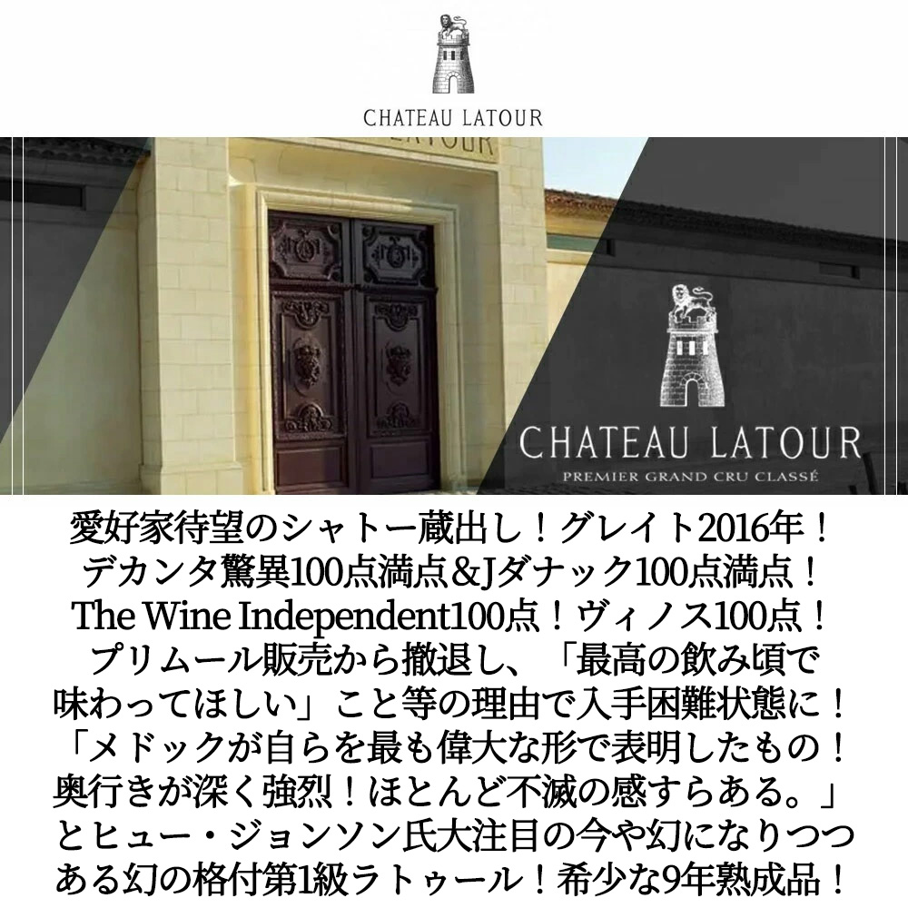 シャトー ラトゥール 2016 メドック プルミエ グラン クリュ クラッセ 公式格付第一級 デカンタ驚異の100点満点&ジェブ ダナック100点満点 Chateau Latour 2016 Premiers Grand Cru Classes