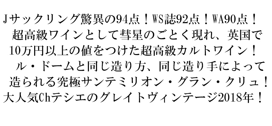 シャトー テシエ 2018 AOCサンテミリオン グラン クリュ 特級 ル ドーム所有シャトー ジョナサン マルテュス パーカーポイント90 赤ワイン