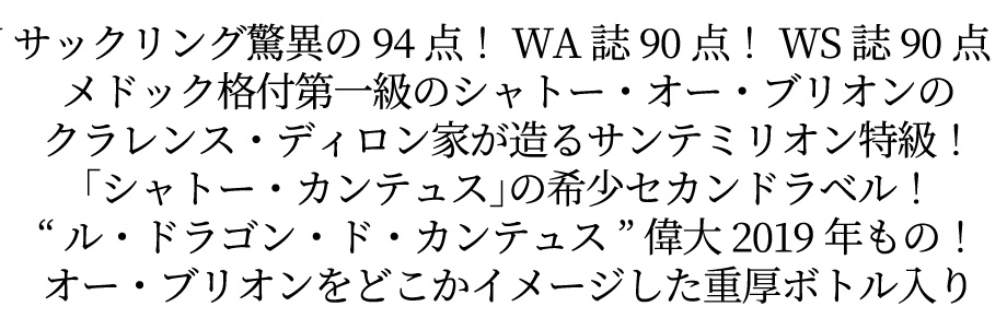 ル ドラゴン ド カンテュス(キンタス) 2019 AOCサンテミリオン グラン クリュ 特級(シャトー オー ブリオン のクラレンス ディロン家元詰)