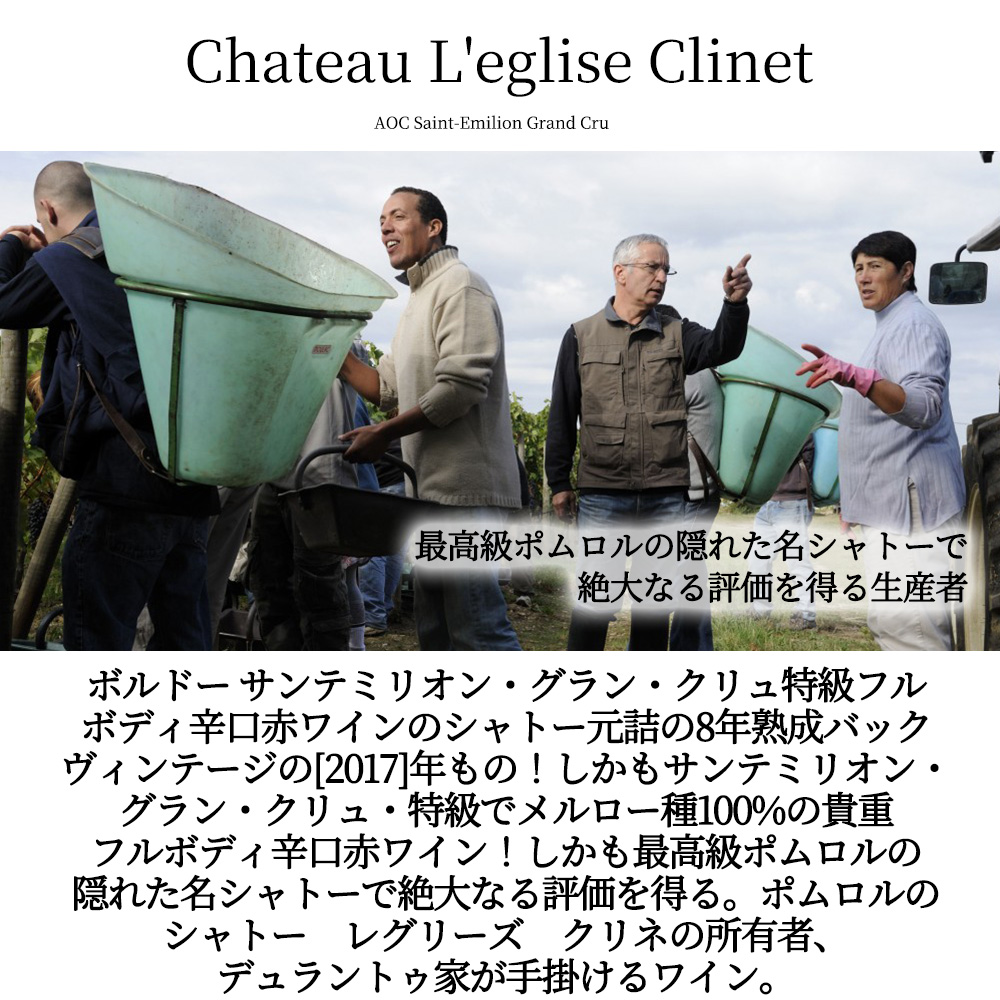 【商品名】サンテム・サンテミリオン・グラン・クリュ・特級[2017]年・AOCサンテミリオン・グラン・クリュ・特級・シャトー元詰(高級ポムロルのシャトー・レグリーズ・クリネの所有者デュラントゥ家所有)・メルロー種100%・驚異の14.5%・8年熟成品・稲葉輸入品【英名】Saintem St Emilion GC 2017 Chateau L'eglise Clinet (Denis Durantou) AOC Saint-Emilion Grand Cru