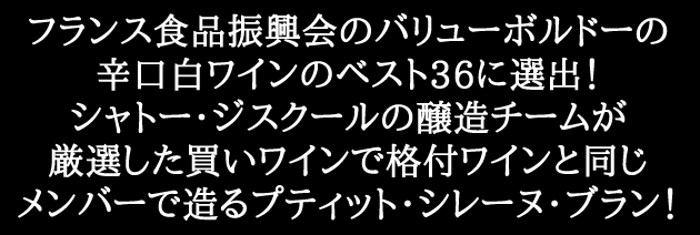 ![]() プティット シレーヌ ブラン 2023 メドック格付第三級シャトー AOCボルドー ブラン 人気も品質も急上昇中!のメドック格付第三級!のシャトー・ジスクール! あの『神の雫』にもオー・メドック・ド・ジスクールが登場!で爆発人気に!ワイン評論家のヒュ・ージョンソン氏に「カントナックの南にある素晴しい三級格付」として★★★3つ星大注目! ゴーミヨ誌やR.パーカー氏、ワインスペクテーター誌ほか主要評価誌大注目!ずばりこのワイン!メドック格付第三級のマルゴーのシャトー・ジスクールの醸造チームが厳選した買いワインで、格付ワインと同じメンバーで造る赤に次ぐ第5のラベル!! その名もプティット・シレーヌ・ブラン!!2010年が初ヴィンテージ!ソーヴィニヨン・ブラン種主体にセミヨン種で造られる超お値打ちボルドー辛口白ワイン!! 白い花やレモンの熟した香りに、セミヨン種由来のアプリコットや桃の厚みのある甘い果実味に、フレッシュな飲み口とミネラルを感じさせるきれいな酸!との見事なバランス!! 洗練された究極辛口白ワインが限定で極少量入荷! |
