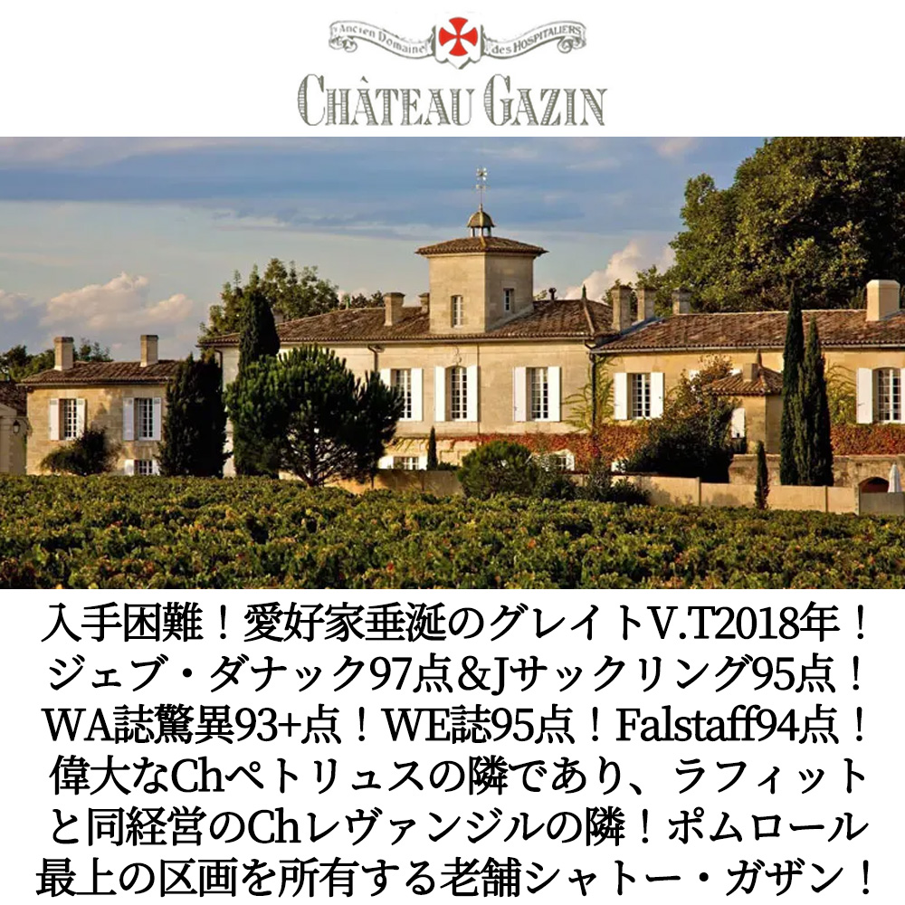 シャトー ガザン 2018 AOCポムロール ジェブ JD97点&JS95点&WE誌95点&デカンタ94点 赤ワイン フルボディ 750ml Chateau GAZIN 2018 AOC Pomerol