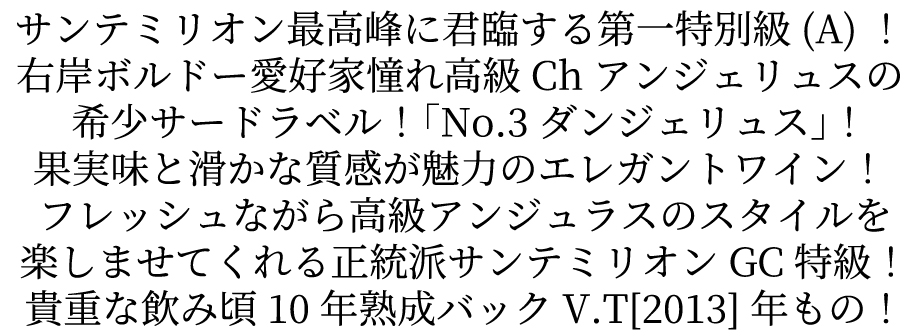 No.3 ダンジェリュス ル ニュメロ トロワ ダンジェリュス 2013 AOCサン テミリオン グラン クリュ 特級 シャトー アンジェリュス