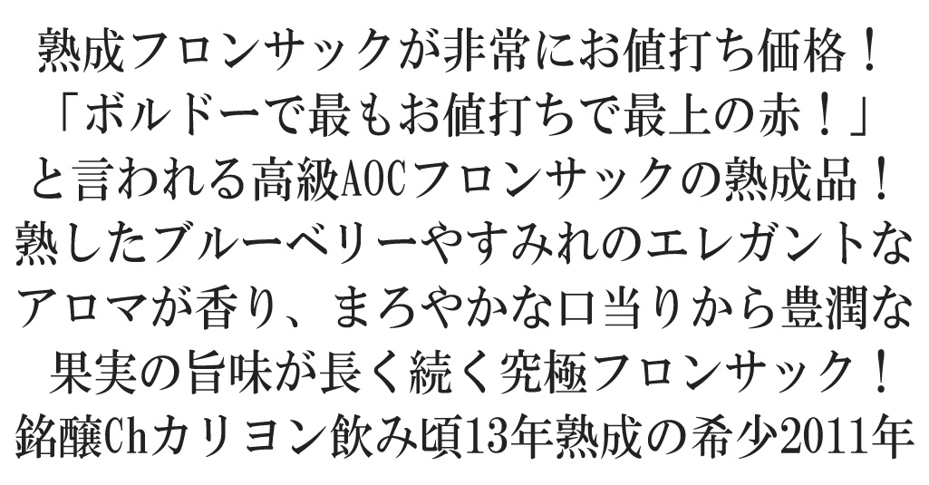 シャトー カリヨン[2011]年 AOCフロンサック 13年熟成品 マコングランヴァンコンクール金賞 ゴールドメダル受賞酒