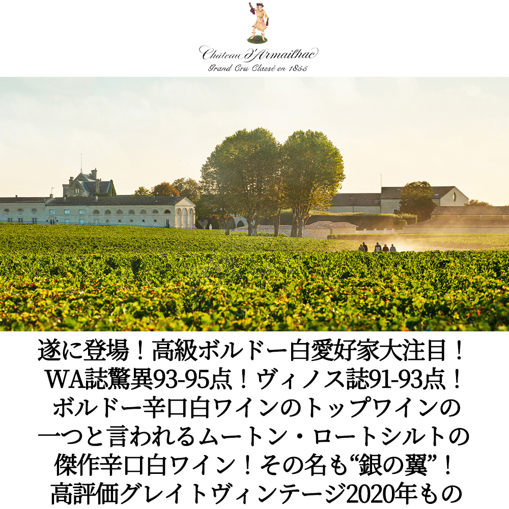 エール ダルジャン 2020 メドック格付第一級 シャトー ムートン ロートシルト元詰 JS95-96点&WA誌93-95点&デカンタ誌93点<br>Aile d'Argent 2020 Chateau Mouton Rothschild AOC