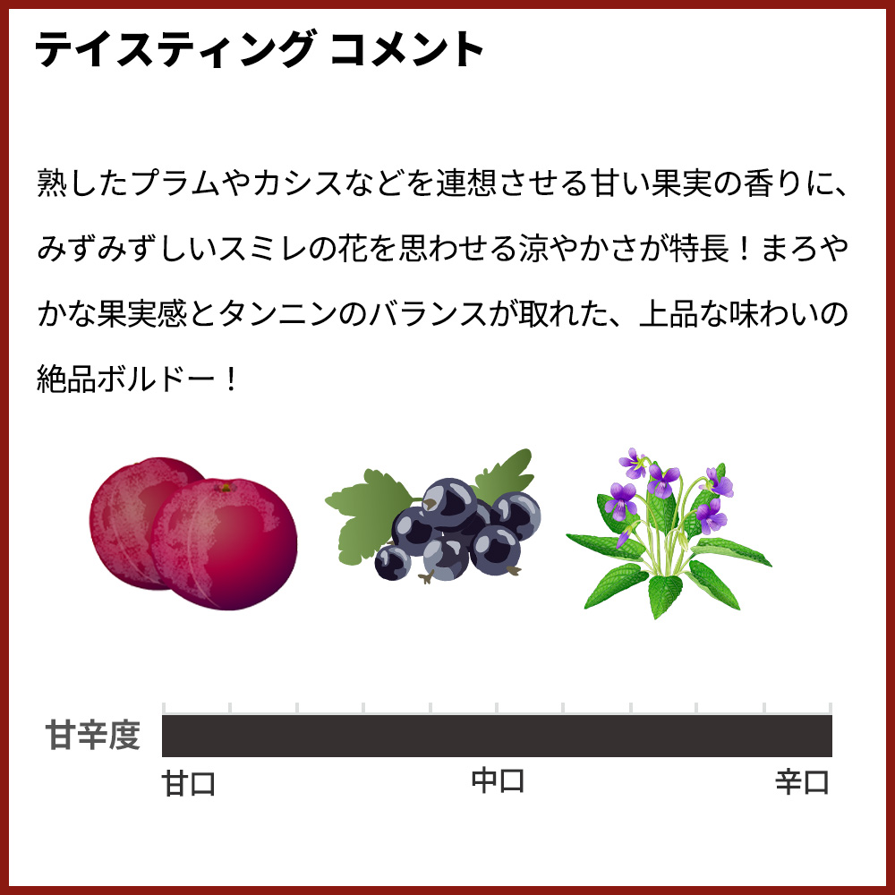 【商品説明】フランス・ボルドー辛口赤ワイン愛好家大注目!ずばりルーツは「男爵の秘蔵ワイン」!しかも偉大なスーパーグレイトヴィンテージ[2020]年もの!(世紀のヴィンテージと言われる満点5つ星年!スーパーグレイトヴィンテージ[2020]年)が専用箱入で遂に少量入荷! ボルドーの最高峰“シャトー・ラフィット・ロートシルト”!その<ラフィット>を始め、ボルドーを代表するキラ星のような名シャトーを擁する「ドメーヌ・バロン・ド・ロートシルト(ロートシルト男爵家)」によるラフィットのネームバリューとエレガンスさを持つ人気AOCボルドーシリーズの辛口赤ワイン! ラフィットグループを率いたエリック男爵はかつて親しい友人たちや家族のために、シャトーワインに近いスタイルで日常的に気軽に楽しめるワインをつくっていました!それがこのサガRのルーツで「男爵の秘蔵ワイン」と呼ばれていました! 現在は男爵の娘、サスキア・ド・ロスチャイルドが、当主として伝統を守りながらも、多様性の時代を乗り切るための新しい風を吹き込もうとしています! 「男爵の秘蔵ワイン」の信念に基づいて誕生した「サガRボルドー」は、世界中のどこにいても、ボルドーの神髄を感じることのできる、シャトーワインに近いスタイルで日常的に気軽に楽しんでいただけるワイン! 「サガ」は世代を超えて語られる物語であり、“R”はロスチャイルドの名前を意味!「テロワールの表現」「いきいきとした果実味」「バランス」をキーワードとして、樽香や凝縮感が突出したワインではなく、ぶどうの清冽な味わいを絶妙に表現したワインを造っています! 醸造責任者ディアヌ・フラマンをはじめとするワインチームは、ぶどうの栽培方法から監修し、ドメーヌ・バロン・ド ロートシルト・ラフィットにふさわしいワインづくりをしています!このサガ・R・ボルドー[2020]年は、「サガ」とは英雄伝説をさす言葉!「“R”(ロートシルト:ロスチャイルド)の伝説」という名を授かった、ラフィットスタイルと言われるエレガントさを感じることができるワイン! 厳選したカベルネ・ソーヴィニヨンを中心にメルロをステンレスタンクとフレンチオーク樽を併用して約6ヶ月熟成!熟したプラムやカシスなどを連想させる甘い果実の香りに、みずみずしいスミレの花を思わせる涼やかさが特長!まろやかな果実感とタンニンのバランスが取れた、上品な味わいの絶品ボルドーがグレイトヴィンテージ[2020]年で待望入荷!