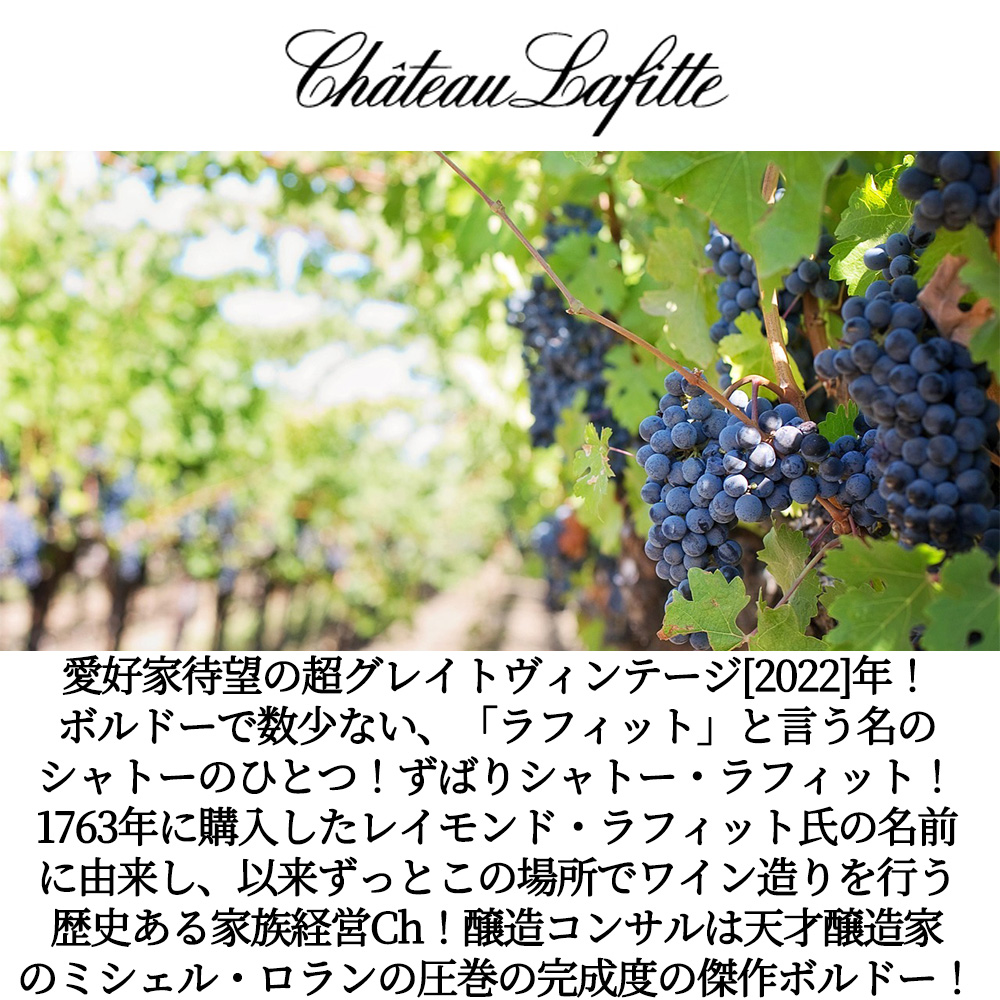 【商品名】シャトー・ラフィット[2022]年・AOCコート・ド・ボルドー・醸造コンサルタント・ミシェル・ロラン・ジェームス・サックリング驚異の92-93点・アルコール度数14.5%