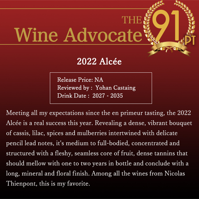 シャトー アルセ 2022 ニコラ ティエンポン AOCカスティヨン コート ド ボルドー ワインアドヴォケイト誌驚異91点 Chateau ALCEE 2022 Nicolas Thienpont AOC Castillon Cotes de