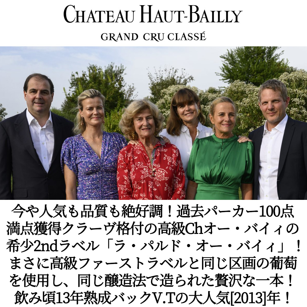 【商品名】ラ・パルド・オー・バイィ(オー・バイイ)[2013]年・グラン・クリュ・クラッセ・ド・グラーヴ(クラーヴ格付)セカンドワイン・AOCペサック・レオニャン・飲み頃13年熟成【英名】La Parde Haut Bailly 2013 Grand Cru Classe de Graves 2nd Label AOC Pessac Leognan