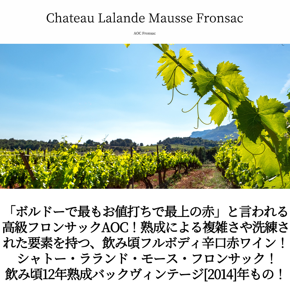 シャトー ラランド モース フロンサック 2014 AOCフロンサック 12年熟成品 赤 フルボディ ワイン チャレンジ インターナショナル金賞受賞 Chateau Lalande Mausse Fronsac 2014 AOC Fronsac