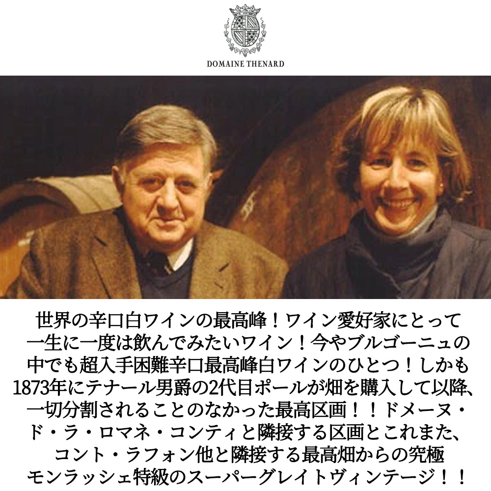 モンラッシェ グラン クリュ 特級 2019 究極限定秘蔵蔵出し品 ドメーヌ バロン テナール元詰 重厚ボトル 正規代理店輸入品 Montrachet Grand Cru 2019 Domaine Baron Thenard AOC Montrachet Grand Cru