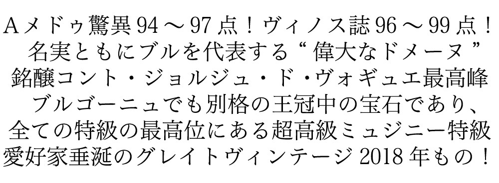 ミュジニー ラン クリュ 特級 キュヴェ ヴィエイユ ヴィーニュ[2018]年 ドメーヌ コント ジョルジュ ド ヴォギュエ元詰 AOCミュジニー
