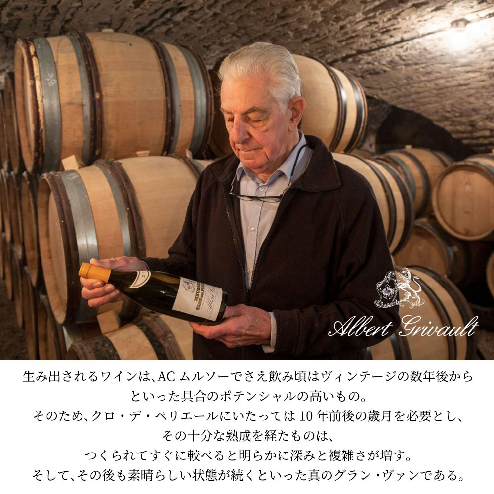 ![]() ムルソーの数あるプルミエ・クリュではペリエール、シャルム、ジュヌヴリエールの3区画の評価が最も高いが、そのなかでもペリエールがアタマひとつ抜きん出ている。そのペリエールにあって古くから最上と謳われてきたのが、このドメーヌ・アルベール・グリヴォーのモノポールであるクロ・デ・ペリエール。ペリエールのなかの1ヘクタール弱(正確には0.9452ヘクター)の区画で、19世紀の後半以来、120年以上にわたって代々ドメーヌで所有してきた。 ![]() 植付けは1985年と1988年で樹齢も安定し、現在その力を遺憾なく発揮している。ペリエールらしい品格ある風味に、グラン・クリュを思わせる奥行きとアフターが備わるワインは、ムルソーでグラン・クリュに格上げされる区画はこのクロ・デ・ペリエールを置いて他にない、という説が十分納得できるもの。 ![]() ドメーヌでは新樽の割合も低く(クロ・デ・ペリエールで3分の1以下)、いわゆる厚化粧ではないワインを生むが、確かにクロ・デ・ペリエールとペリエールを較べると、厚みと複雑さにそのテロワールの差異を歴然と感じとることができる。 ![]() ドメーヌではクロ・デ・ペリエールのすぐ北隣に位置する、クロのつかないペリエールももっていて、広さは1.5459ヘクタール。1904年以来、1世紀以上にわたって所有し、樹齢も平均で50年ほどとドメーヌのなかでは最も高くなっている。その際立ったフィネスによってよくシャルムと較べられるペリエールだが、このアルベール・グリヴォーのペリエールもまさしくそれに違わぬ1本で、ピュリニー的ともいえるくっきりした輪郭の、背筋の通ったワインに仕上がっている。ACムルソー(リュー=ディはオー・ヴィラージュ、クロ・デ・ペリエールやペリエールと異なり、村のすぐ西に位置している)もクロで囲われ、フランス革命以前から耕作されてきた由緒ある区画にある。 |