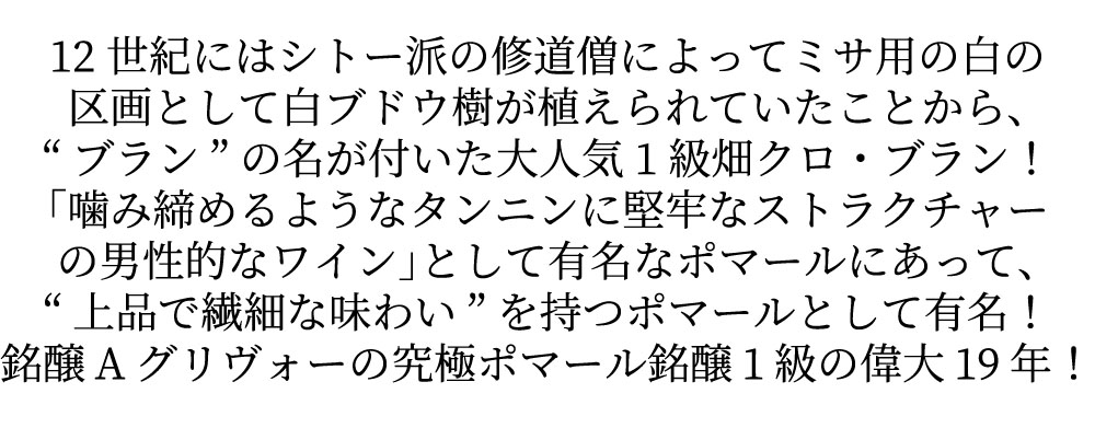 ポマール プルミエ クリュ 一級 クロ ブラン 2019 ドメーヌ アルベール グリヴォー元詰 ファインズ輸入品 赤 フルボディ
