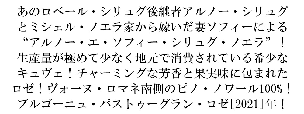 ブルゴーニュ パストゥーグラン ピノ ノワール ロゼ 2021 アルノーエ ソフィ シリュグ ノエラ元詰 正規代理店輸入 AOCブルゴーニュ ロゼ辛口