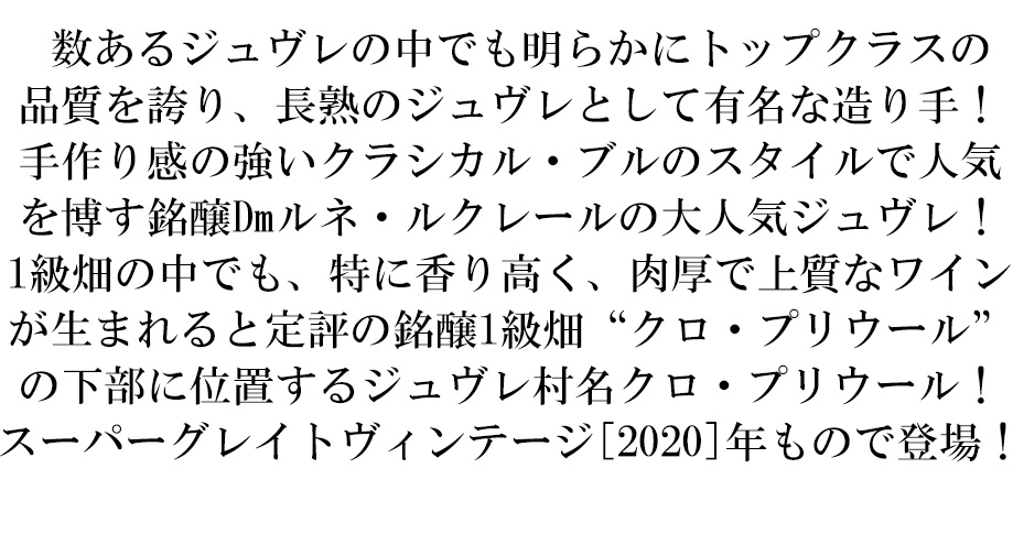 ジュヴレ シャンベルタン クロ プリユール プリウール 2020 ドメーヌ ルネ ルクレール 赤ワイン ブルゴーニュワイン 辛口 フルボディ 高級