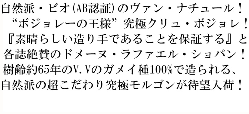 モルゴン レ シャルム 2021 ドメーヌ ラファエル ショパン 自然派 ヴァンナ チュール ビオロジック 樹齢65年VV 赤ワイン フランスワイン