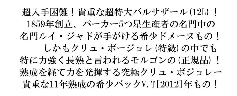 モルゴン コート ド ピイ 2012 シャトー デ ジャック ルイ ジャド社 WA誌92点 12L 赤ワイン フランス【豪華木箱入 超大型限定ボトル】