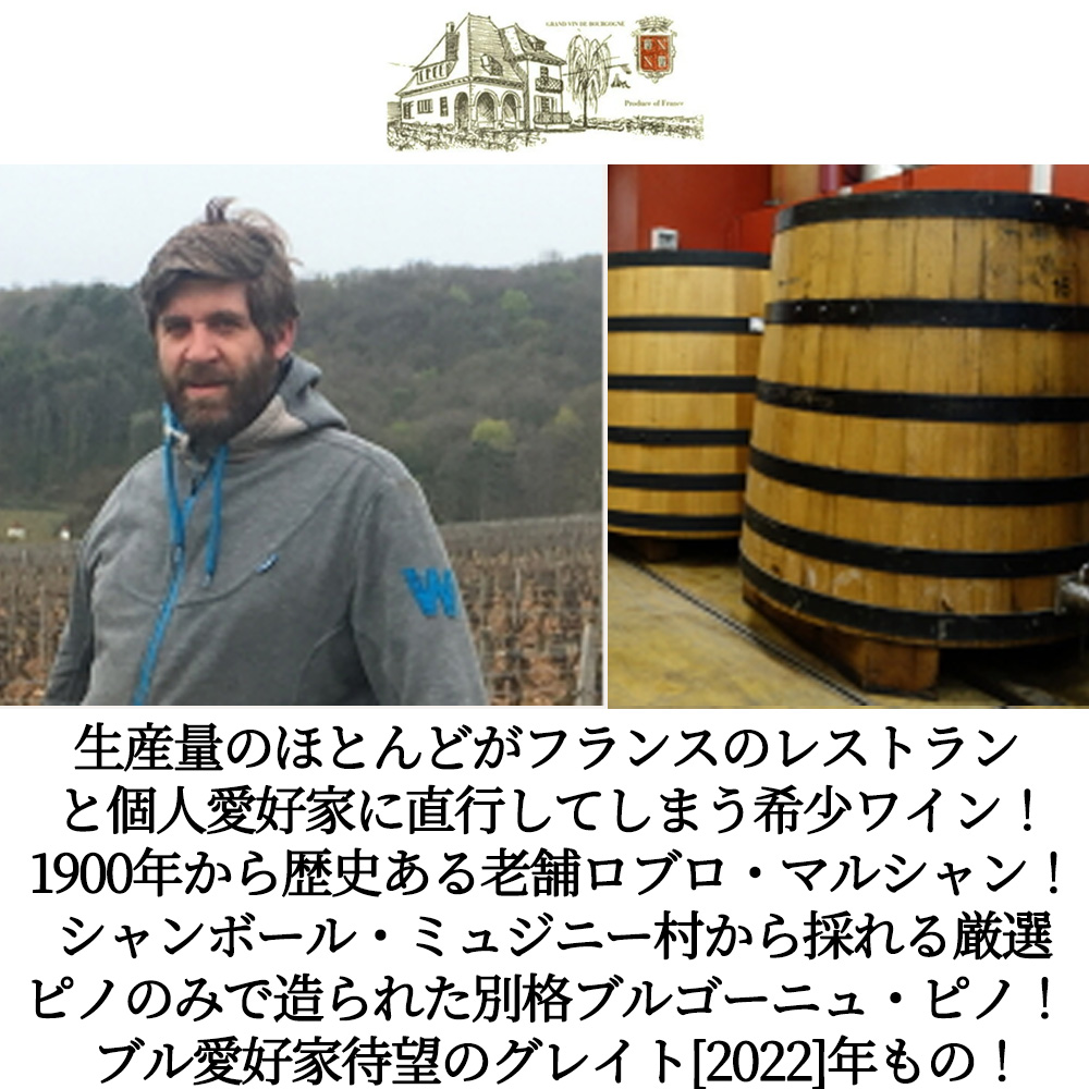 【商品説明】ブルゴーニュ辛口赤ワイン愛好家大注目!シャンボール・ミュジニー愛好家も大注目!シャンボール・ミュジニー村内のリウ・ディ「レ・グラヴィエ」と「レ・ペルソン」畑100%のスーパー・ブルゴーニュ・ピノ・ノワール100%!しかも大人気スーパーグレイトヴィンテージ[2022]年もの(最新スーパーグレイトヴィンテージ[2022]年もので少量入荷!(アシェットガイド誌の2024年版ではブルゴーニュの赤に18/20点の高評価!この最高評価は過去50年以降で1976年、1978年、1990年と2005年、2015年と2018、2019、2020とこの2022年の9ヴィンテージのみ)!が遂に待望の少量入荷! 造り手は、1900年から歴史のある老舗の究極ドメーヌ!なんと“Route des Grand Cru”の街道沿いの、ずばりボンヌ・マール特級の隣にシャンボール・ミュジニー・一級の“レ・フュエ”があり、その隣のシャンボール・ミュジニー 一級“レ・クラ”のすぐ隣のすばらしい一等地にドメーヌをかまえる究極ドメーヌ!所有するシャンボール・ミュジニーからエシェゾーまで、すべてが樹齢40年以上のV.V.という究極ドメーヌ!生産量のほとんどがフランスのレストランと個人愛好家に直行!されてしまうため、日本では入手困難なワイン!(2001年、本格的に自社瓶詰めを始めた若きフレデリック・ロブロ氏は、クリストフ・ルーミエやユドロ・バイエのドミニク・ル・グエンにアドバイスを受ける。) その若きフレデリック・ロブロによるシャンボール村内のシャンボール・ミュジニー村内のリウ・ディ「レ・グラヴィエ」と「レ・ペルソン」畑100% (Les GraviersとLes Pelsons) のわずか0.65haの平均樹齢20年のピノ・ノワールを2~3回使用樽で14~16ヶ月熟成!で造られる人気のグレイトヴィンテージ[2022]年が限定で、しかも現地のセラー数ヶ月前の蔵出しで限定少量入荷!