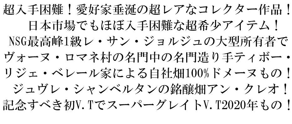 ![]() 世界一有名かつ高価なワインを生み出す、ロマネ・コンティが存在する村、ヴォーヌ・ロマネ。リジェ・ベレールが所有するラ・ロマネはロマネ・コンティと肩をならべる、ヴォーヌ・ロマネの偉大なグラン・クリュです。 ![]() 畑を所有するリジェ・ベレール家は、ナポレオンにも軍人として仕えてきた由緒ある貴族。1815年、ナポレオン政権下の将軍であった初代ルイ・リジェ・ベレール氏がドメーヌを設立し、当時はラ・ターシュやラ・グラン・リュ、シャンベルタン等、約60haを所有する大ドメーヌでした。今でもラ・ターシュの前にそびえる十字架にリジェ・ベレールの銘が刻まれているのはこのためです。 ![]() その後、相続問題により所有していた畑は分割され、これらの畑を手放すことになります。ラ・ロマネと一部の優良な1級畑は手元に残ったものの、ブドウの栽培・ワインの醸造・瓶詰をすべてルロワ、アルベール・ビショー、ブシャール・ペール・エ・フィスなどのネゴシアンに一任。そんな中、現在7代目当主を務めるルイ・ミッシェル・リジェ・ベレール氏は、軍人になる道を選ばず、祖父と同じく自身がヴィニュロン(ブドウ栽培家)となり、ワイン生産者という道を歩むことを決意します。これまで他のドメーヌに任せてきた自社畑を自ら手掛けるようになり、ここにドメーヌ・リジェ・ベレールが誕生しました。 | ![]() ■ぶどう品種:ピノ・ノワール100% ■樹齢:1950年から1958年にかけてジュヴレ渓谷の続くブロションに1.4ヘクタールのブドウの木が植えられた ■土壌:ジュヴレ渓谷のスクリーンに覆われた泥灰土と、台地の赤いシルトに覆われた、褐色の粘土石灰質の浅い土壌/ 「クレオ」は「白亜」を意味し、この土壌の特徴を強調 ■収穫:収穫は手作業 ■ 葡萄畑面積:1.4ヘクタール 超入手困難!高級ブルゴーニュ辛口赤ワイン愛好家大注目!ニュイ・サン・ジョルジュの最高峰!力強いストラクチャーと優雅さを併せ持つブルゴーニュの王様!と言われるジュヴレ・シャンベルタンAOC! 造り手は、“レ・サン・ジョルジュ”の大型の所有者であり、ヴォーヌ・ロマネ村のグラン・クリュ「ラ・ロマネ」の所有者でも知られる、1720年から歴史のある名門リジェ・ベレール家のコント・リジェ・ベレールと同じリジェ・ベレール家の家系であり、数あるリシュブールの中でもトップクラスの評価を受ける「ドメーヌ・ティボー・リジェ・ベレール」! 石灰岩のテロワールだけで、ワインにミネラルのフレッシュさをもたらすのに十分だからで石灰質の土壌がこのワインに美しいフレッシュさを与えている!そのユニークな立地は、このアペラシオンのあるグラン・クリュにふさわしいピュアさをもたらしている! イギリス・デカンタ誌、ヴィノス誌、アラン・メドゥのバーガウンド・ドット・コム、高評価!絶賛!リッチで魅力的なテクスチャーのフレーバーも比較的洗練されており、肉付きがよく、ふくよかですらあるフィニッシュで終わるが、若々しく渋みもある銘醸畑産の名門ティボー・リジェ・ベレール!愛好家垂涎のコレクター向けファーストヴィンテージ作品が限定で正規品で極少量入荷! |