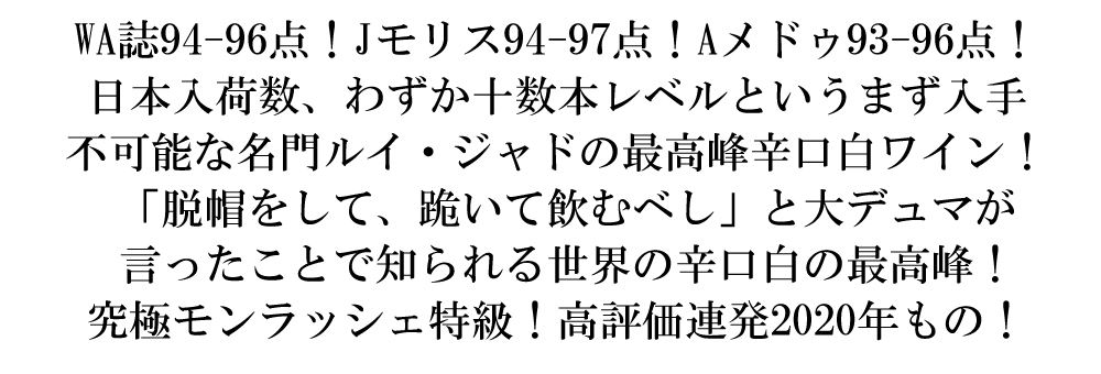 モンラッシェ グラン クリュ 特級[2020]年 蔵出し品 オーク樽18-26ヶ月熟成 ルイ ジャド社 AOCモンラッシェ グラン クリュ